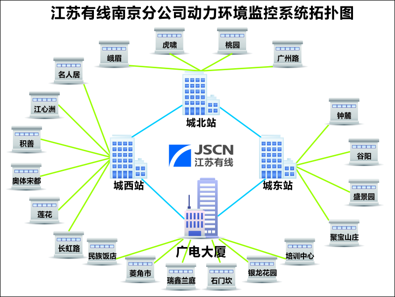 随着江苏省广电有线信息网络股份有限公司南京分公司近年来网络系统的建设,各机房设备档次、数量和重要性也日益提升。由于机房设备多、 管理人员少等原因,发生问题很难及时了解,容易延误抢修时间。因此对各种通信设备以及机房内电源及环境参数的监控就显得尤其重要。因此 2009年南京广电建设一套我公司三级联网的智慧机房动力环境监控系统,实现各远程监控机房的温湿度、烟雾、漏水、配电、UPS、空调、门禁 、 视频实施监测;分监控中心实现对下辖机房远程监控系统状态和报警信息,并进行管理;总监控中心对所有机房进行统一监控,管理,并对各分 中心权限进行设定,报警信息统一存数管理。它是提高设备可靠性、稳定性,有效地避免故障的重要手段。