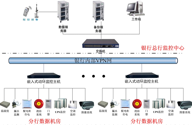 根据临安农信社建设要求,需要远程对各营业网点和中心数据机房进行无人监测报警,采用我公司自主研发的MCU05系列机房动力环境监控系统,对机房内的温湿度监控、漏水监测、配电系统监控、空调监控、UPS监控、消防系统监控、视频监控系统等进行集中监控,对所有的设备和系统监控其运行状态、运行参数、报警处理等,系统对发生的报警事件以本地声光告警、系统自动弹出报警框、手机短信等方式通知机房管理人员,准确定位报警发生的时间和地点,以便及时处理故障,并对各网点进行充放电管理。该系统不仅为机房科学管理提供了更加完善的手段和措施,同时为临安农信社节省了大量人力、物力、财力,减轻了管理人员的工作负担,最大程度的保障了农信社机房的安全运行与用户的投资。